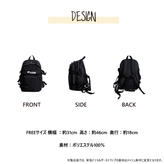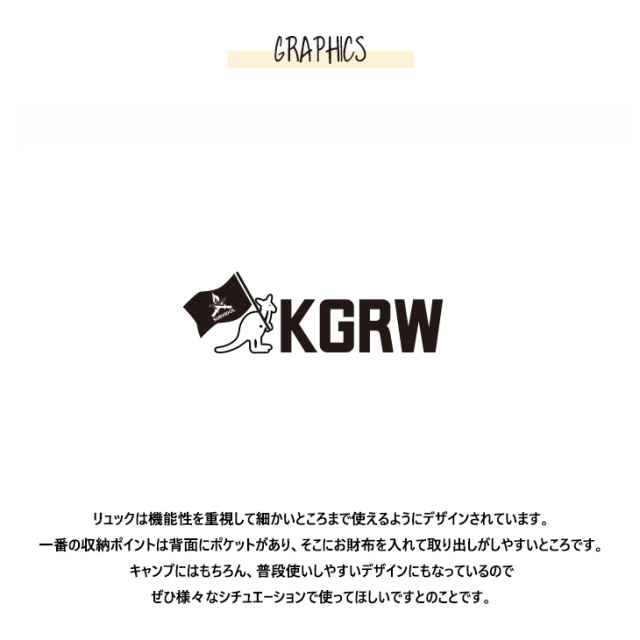 | 商品Data | カンガルーのロゴマークでおなじみ 国内の芸能人、海外セレブからも愛される 世界的に有名なブランド「KANGOL(カンゴール)」から ライフスタイルに特化した新コンセプトブランド。 「KANGOL REWARD」誕生!!! 【KANGOL REWARD コラボ企画】 さばいどる かほなんさんを迎えたコラボレーション企画第4弾! 受注期間限定リュックをご用意! 【デザイン】 リュックは機能性を重視して細かいところまで使えるようにデザインされています。 一番の収納ポイントは背面にポケットがあり、そこにお財布を入れて取り出しがしやすいところです。 キャンプにはもちろん、普段使いしやすいデザインにもなっているので ぜひ様々なシチュエーションで使ってほしいですとのことです。 【ポイント】 ・大きな立体ポケット ・水が浸水しにくいボンディング生地を使用 ・13インチのノートPCが収納可能(※全ての機種が収納可能ではありません) ・サイドのベルトでリュックの厚みを調整可能 ※製品版では、背面とショルダーストラップの裏地はメッシュ素材に変更となります。 ※現時点での商品の発送予定時期は【8月下旬頃〜9月上旬頃順次発送】を予定しております。 尚、工場の生産の都合上、お客様のご入金・決済のタイミングにより前後する場合がございます。 予めご了承ください。 ※商品代金が10万円以上にて代引き決済を利用してのご注文につきましては、 トラブル防止のため、決済方法をクレジットカード決済もしくはコンビニ決済に変更 させていただく場合がございます。変更前にお電話、メールにてご連絡をさせていただきます。※ ※サイズ・カラーによってはWEBページの写真と若干仕様が異なる場合が御座います。 予めご了承ください。 ※同サイズでも手作業での生産により、 個体差が生じてしまいますので、1〜2cm程度の誤差は予めご了承くださいませ。 ※また、受注生産とさせていただいておりますが、 各色・サイズ毎に生産数に限りがございます為、 生産数の上限に達しました場合在庫切れとなる場合がございます。 予めご了承頂けますようお願い致します。 |