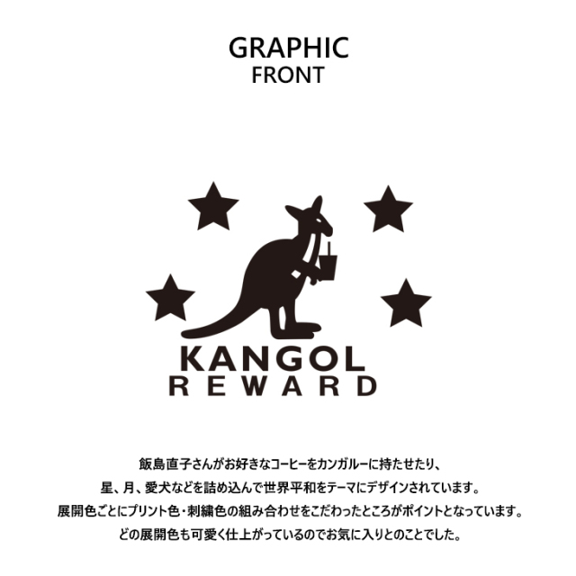 | 商品Data | カンガルーのロゴマークでおなじみ 国内の芸能人、海外セレブからも愛される 世界的に有名なブランド「KANGOL(カンゴール)」から ライフスタイルに特化した新コンセプトブランド。 「KANGOL REWARD」誕生!!! 【KANGOL REWARD コラボ企画】 飯島直子さんを迎えたコラボレーション企画! 受注期間限定半袖TシャツとZIPパーカー、トートバッグをご用意! 【デザイン】 飯島直子さんがお好きなコーヒーをカンガルーに持たせたり、 星、月、愛犬などを詰め込んで世界平和をテーマにデザインされています。 展開色ごとにプリント色・刺繍色の組み合わせをこだわったところがポイントとなっています。 どの展開色も可愛く仕上がっているのでお気に入りとのことでした。 ここでしか手に入らない受注期間限定アイテムです!是非お買い求めください!!! ※商品の発送予定時期は 【12月中旬頃〜12月下旬頃順次発送予定】となります。 ※受注生産の為、発送予定時期が前後する場合がございます。 ※高額注文の場合には ご注文後にお電話にてご連絡をさせていただく場合がございます。 お電話にてご連絡が取れない場合にはメールにてご連絡させていただき、 ご連絡日より3日以内にご返信をいただけない場合には不正注文の可能性があると判断し トラブル防止のためご注文をキャンセルとさせていただきます。 ※商品によっては撮影時にサンプルを使用しているため若干仕様が異なる場合がございます。 また、サイズ・カラーによっては仕様が異なる場合もございます。 ※手作業で縫製をしているため縫製の仕様により、 個体差が生じてしまいますので、1〜2cm程度の誤差は予めご了承くださいませ。 ※洗濯機を使用した場合、お届け時のサイズより多少縮む場合がございます。 洗濯機を使用する場合は裏返してネットに入れることを推奨しております。 また、タンブラー乾燥機を使用しますとプリントが剥がれる恐れがありますので 避けていただきますようお願いいたします。 また、洗濯時の液温は40度以下とし、 塩素系および酸素系漂白剤の使用は避けていただきますようお願いいたします。 アイロンにつきましてもプリント及び刺繍部分は避け、 生地部分にアイロンをかける場合にはあて布をして110度(低温)にてお願いいたします。 ※また、受注生産とさせていただいておりますが、 各色・サイズ毎に生産数に限りがございます為、 生産数の上限に達しました場合在庫切れとなる場合がございます。 |