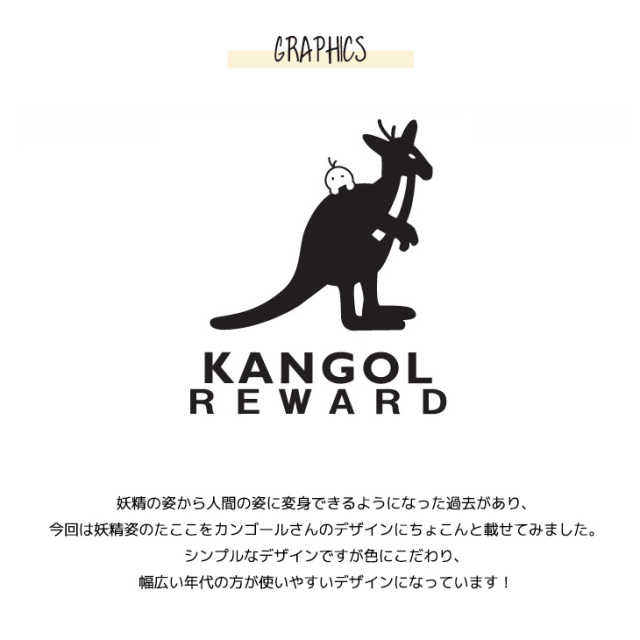 | 商品Data | カンガルーのロゴマークでおなじみ 国内の芸能人、海外セレブからも愛される 世界的に有名なブランド「KANGOL(カンゴール)」から ライフスタイルに特化した新コンセプトブランド。 「KANGOL REWARD」誕生!!! 【KANGOL REWARD コラボ企画】 たここさんを迎えたコラボレーション企画!! 受注期間限定半袖Tシャツとプルオーバーパーカー、トートバッグ、クッションをご用意! 【デザイン】 妖精の姿から人間の姿に変身できるようになった過去があり、 今回は妖精姿のたここをカンゴールさんのデザインにちょこんと載せてみました。 シンプルなデザインですが色にこだわり、幅広い年代の方が使いやすいデザインになっています! ※現時点での商品の発送予定時期は【12月下旬頃〜1月下旬頃順次発送】を予定しております。 尚、工場の生産の都合上、お客様のご入金・決済のタイミングにより前後する場合がございます。 予めご了承ください。 ※商品代金が10万円以上にて代引き決済を利用してのご注文につきましては、 トラブル防止のため、決済方法をクレジットカード決済もしくはコンビニ決済に変更 させていただく場合がございます。変更前にお電話、メールにてご連絡をさせていただきます。※ ※商品によっては撮影時にサンプルを使用しているため若干仕様が異なる場合がございます。 また、サイズ・カラーによっては仕様が異なる場合もございます。 ※手作業で縫製をしているため縫製の仕様により、 個体差が生じてしまいますので、1〜2cm程度の誤差は予めご了承くださいませ。 ※洗濯機を使用した場合、お届け時のサイズより多少縮む場合がございます。 洗濯機を使用する場合は裏返してネットに入れることを推奨しております。 また、タンブラー乾燥機を使用しますとプリントが剥がれる恐れがありますので 避けていただきますようお願いいたします。 また、洗濯時の液温は40度以下とし、 塩素系および酸素系漂白剤の使用は避けていただきますようお願いいたします。 アイロンにつきましてもプリント及び刺繍部分は避け、 生地部分にアイロンをかける場合にはあて布をして110度(低温)にてお願いいたします。 ※また、受注生産とさせていただいておりますが、 各色・サイズ毎に生産数に限りがございます為、 生産数の上限に達しました場合在庫切れとなる場合がございます。 予めご了承頂けますようお願い致します。 |