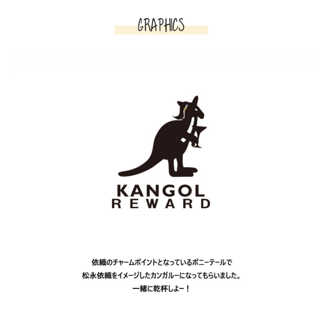 カンガルーのロゴマークでおなじみ 国内の芸能人、海外セレブからも愛される 世界的に有名なブランド「KANGOL(カンゴール)」から ライフスタイルに特化した新コンセプトブランド。 「KANGOL REWARD」誕生!!! 【KANGOL REWARD コラボ企画】 松永依織さんを迎えたコラボレーション企画!! 受注期間限定ZIPパーカー、半袖Tシャツ、ネックレスをご用意! 【デザイン】 依織のチャームポイントとなっているポニーテールで 松永依織をイメージしたカンガルーになってもらいました。 一緒に乾杯しよー! ここでしか手に入らない受注期間限定アイテムです!是非お買い求めください!!! ※商品の発送予定時期は【3月中旬頃〜3月下旬頃順次発送予定】 となります。 ※高額注文の場合には ご注文後にお電話にてご連絡をさせていただく場合がございます。 お電話にてご連絡が取れない場合にはメールにてご連絡させていただき、 ご連絡日より3日以内にご返信をいただけない場合には不正注文の可能性があると判断し トラブル防止のためご注文をキャンセルとさせていただきます。 ※商品によっては撮影時にサンプルを使用しているため若干仕様が異なる場合がございます。 また、サイズ・カラーによっては仕様が異なる場合もございます。 ※手作業で縫製をしているため縫製の仕様により、 個体差が生じてしまいますので、1〜2cm程度の誤差は予めご了承くださいませ。 ※洗濯機を使用した場合、お届け時のサイズより多少縮む場合がございます。 洗濯機を使用する場合は裏返してネットに入れることを推奨しております。 また、タンブラー乾燥機を使用しますとプリントが剥がれる恐れがありますので 避けていただきますようお願いいたします。 また、洗濯時の液温は40度以下とし、 塩素系および酸素系漂白剤の使用は避けていただきますようお願いいたします。 アイロンにつきましてもプリント及び刺繍部分は避け、 生地部分にアイロンをかける場合にはあて布をして110度(低温)にてお願いいたします。 ※また、受注生産とさせていただいておりますが、 各色・サイズ毎に生産数に限りがございます為、 生産数の上限に達しました場合在庫切れとなる場合がございます。 |