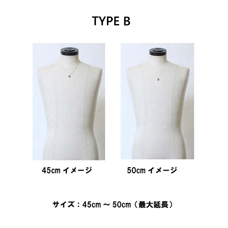 チェーン長さ A:40cm〜45cm(サイズ調整5cm分) B:45cm〜50cm(サイズ調整5cm分) |