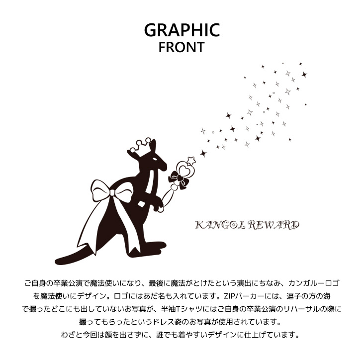 | 商品Data | カンガルーのロゴマークでおなじみ 国内の芸能人、海外セレブからも愛される 世界的に有名なブランド「KANGOL(カンゴール)」から ライフスタイルに特化した新コンセプトブランド。 「KANGOL REWARD」誕生!!! 【KANGOL REWARD コラボ企画】 生田衣梨奈さんを迎えたコラボレーション企画! 受注期間限定半袖Tシャツ、ZIPパーカー、スウェットパンツ、クッションをご用意! 【デザイン】 ご自身の卒業公演で魔法使いになり、最後に魔法がとけたという演出にちなみ、カンガルーロゴを魔法使いにデザイン。 ロゴにはあだ名も入れています。 ZIPパーカーには、逗子の方の海で撮ったどこにも出していないお写真が、 半袖Tシャツにはご自身の卒業公演リハーサルの際に撮ってもらったというドレス姿のお写真が使用されています。 わざと今回は顔を出さずに、誰でも着やすいデザインし仕上げています。 ここでしか手に入らない受注期間限定アイテムです!是非お買い求めください!!! ※商品の発送予定時期は 【3月中旬頃〜3月下旬頃順次発送予定】 となります。 ※受注生産の為、発送予定時期が前後する場合がございます。 ※高額注文の場合には ご注文後にお電話にてご連絡をさせていただく場合がございます。 お電話にてご連絡が取れない場合にはメールにてご連絡させていただき、 ご連絡日より3日以内にご返信をいただけない場合には不正注文の可能性があると判断し トラブル防止のためご注文をキャンセルとさせていただきます。 ※商品によっては撮影時にサンプルを使用しているため若干仕様が異なる場合がございます。 また、サイズ・カラーによっては仕様が異なる場合もございます。 ※手作業で縫製をしているため縫製の仕様により、 個体差が生じてしまいますので、1〜2cm程度の誤差は予めご了承くださいませ。 ※洗濯機を使用した場合、お届け時のサイズより多少縮む場合がございます。 洗濯機を使用する場合は裏返してネットに入れることを推奨しております。 また、タンブラー乾燥機を使用しますとプリントが剥がれる恐れがありますので 避けていただきますようお願いいたします。 また、洗濯時の液温は40度以下とし、 塩素系および酸素系漂白剤の使用は避けていただきますようお願いいたします。 アイロンにつきましてもプリント及び刺繍部分は避け、 生地部分にアイロンをかける場合にはあて布をして110度(低温)にてお願いいたします。 ※また、受注生産とさせていただいておりますが、 各色・サイズ毎に生産数に限りがございます為、 生産数の上限に達しました場合在庫切れとなる場合がございます。 |