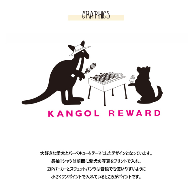 カンガルーのロゴマークでおなじみ 国内の芸能人、海外セレブからも愛される 世界的に有名なブランド「KANGOL(カンゴール)」から ライフスタイルに特化した新コンセプトブランド。 「KANGOL REWARD」誕生!!! 【KANGOL REWARD コラボ企画】 中村里帆さんを迎えたコラボレーション企画! 受注期間限定ZIPパーカー、スウェットパンツ、長袖Tシャツをご用意! 【デザイン】 大好きな愛犬とバーベキューをテーマにしたデザインとなっています。 長袖Tシャツは前面に愛犬の写真をプリントで入れ、 ZIPパーカーとスウェットパンツは普段でも使いやすいように 小さくワンポイントで入れているところがポイントです。 ※商品の発送予定時期は【7月上旬頃〜7月中旬頃順次発送予定】 となります。 ※受注生産の為、発送予定時期が前後する場合がございます。 ※高額注文の場合には ご注文後にお電話にてご連絡をさせていただく場合がございます。 お電話にてご連絡が取れない場合にはメールにてご連絡させていただき、 ご連絡日より3日以内にご返信をいただけない場合には不正注文の可能性があると判断し トラブル防止のためご注文をキャンセルとさせていただきます。 ※商品によっては撮影時にサンプルを使用しているため若干仕様が異なる場合がございます。 また、サイズ・カラーによっては仕様が異なる場合もございます。 ※手作業で縫製をしているため縫製の仕様により、 個体差が生じてしまいますので、1〜2cm程度の誤差は予めご了承くださいませ。 ※洗濯機を使用した場合、お届け時のサイズより多少縮む場合がございます。 洗濯機を使用する場合は裏返してネットに入れることを推奨しております。 また、タンブラー乾燥機を使用しますとプリントが剥がれる恐れがありますので 避けていただきますようお願いいたします。 また、洗濯時の液温は40度以下とし、 塩素系および酸素系漂白剤の使用は避けていただきますようお願いいたします。 アイロンにつきましてもプリント及び刺繍部分は避け、 生地部分にアイロンをかける場合にはあて布をして110度(低温)にてお願いいたします。 ※また、受注生産とさせていただいておりますが、 各色・サイズ毎に生産数に限りがございます為、 生産数の上限に達しました場合在庫切れとなる場合がございます。 |