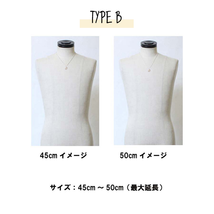チェーン長さ A:40cm〜45cm(サイズ調整5cm分) B:45cm〜50cm(サイズ調整5cm分) |