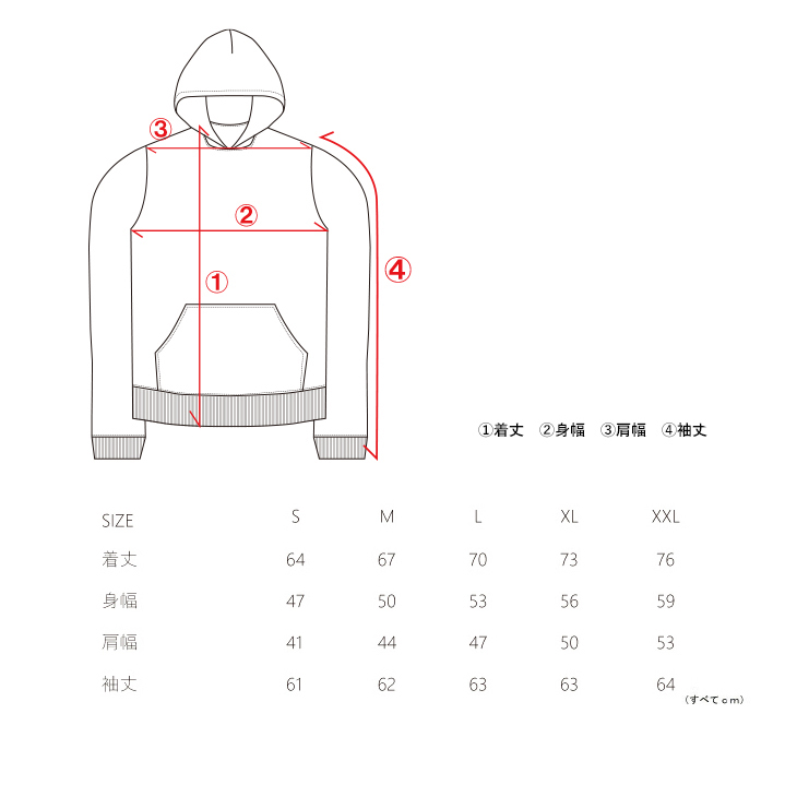 【ユニセックスサイズ】 ユニセックス:S■着丈64cm,身幅47cm,肩幅41cm,袖丈61cm ユニセックス:M■着丈67cm,身幅50cm,肩幅44cm,袖丈62cm ユニセックス:L■着丈70cm,身幅53cm,肩幅47cm,袖丈63cm ユニセックス:XL■着丈73cm,身幅56cm,肩幅50cm,袖丈63cm ユニセックス:XXL■着丈76cm,身幅59cm,肩幅53cm,袖丈64cm ★撮影時、中上貴晶さん着用サイズは 全色【ユニセックス:L】サイズです。 ★レディースモデル着用サイズは D.NAVY【ユニセックス:M】サイズ BLACK, GRAY, OATMEAL, A.GREEN【ユニセックス:XL】サイズです。 レディースモデル身長: BLACK, GRAY, D.NAVY:155cm OATMEAL,A.GREEN:158cm |